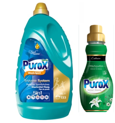 ПУРОКС ТЕЧЕН ГЕЛ ЗА ВЪЛНЕНИ И СПОРТНИ ДРЕХИ 4000 МЛ 133 ПР + ПОДАРЪК ПАРФЮМ ЗА ДРЕХИ ПУРОКС 400 МЛ /ТЮРКОАЗ/