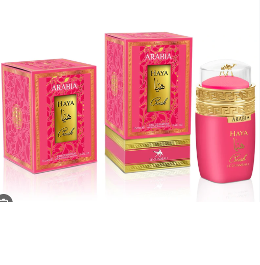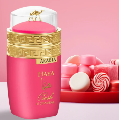 Arabia Haya Crush от Le Chameau Emper е съблазнителен и страстен ориенталски аромат с флорални и плодови нотки. Вдъхновен е от Oriana от Parfum de Marly и Love Don't be Shy от Kilian.