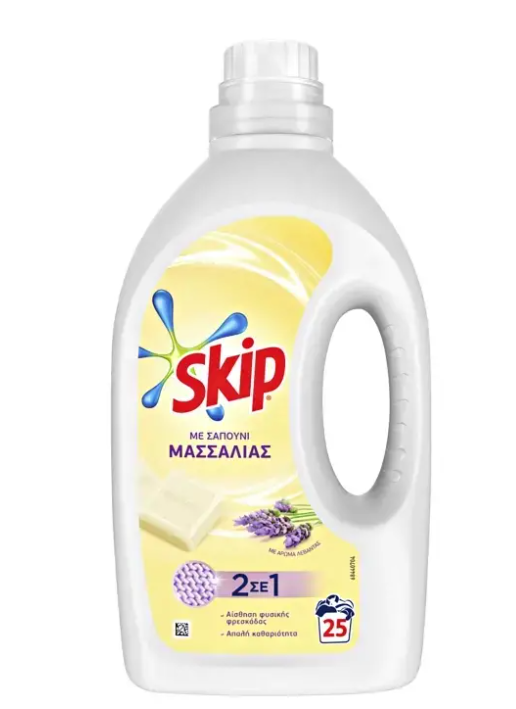 СКИП ТЕЧЕН ГЕЛ ЗА УНИВЕРСАЛНО ПРАНЕ 2 В 1 МАРСИЛСКИ САПУН И ЛАВАНДУЛА 25 П 1250 МЛ