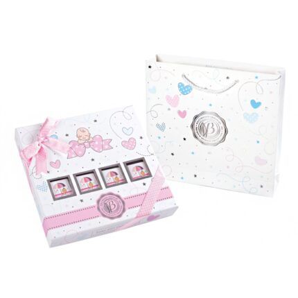 НЯМА ТАКЪВ ЛУКС! УНИКАЛНА ЛУКСОЗНА БОНБОНИЕРА С БЕЛГИЙСКИ РЪЧНО ПРИГОТВЕНИ ПРАЛИНИ АСОРТИ! УНИКАЛНА КУТИЯ ! НЕВЕРОЯТЕН ПОДАРЪК ЗА НОВОРОДЕНИ БЕБЕТА МОМИЧЕТА, 312 Г ! С ВКЛЮЧЕНА ПОДАРЪЧНА ТОРБИЧКА!48 БОНБОНА В КУТИЯ