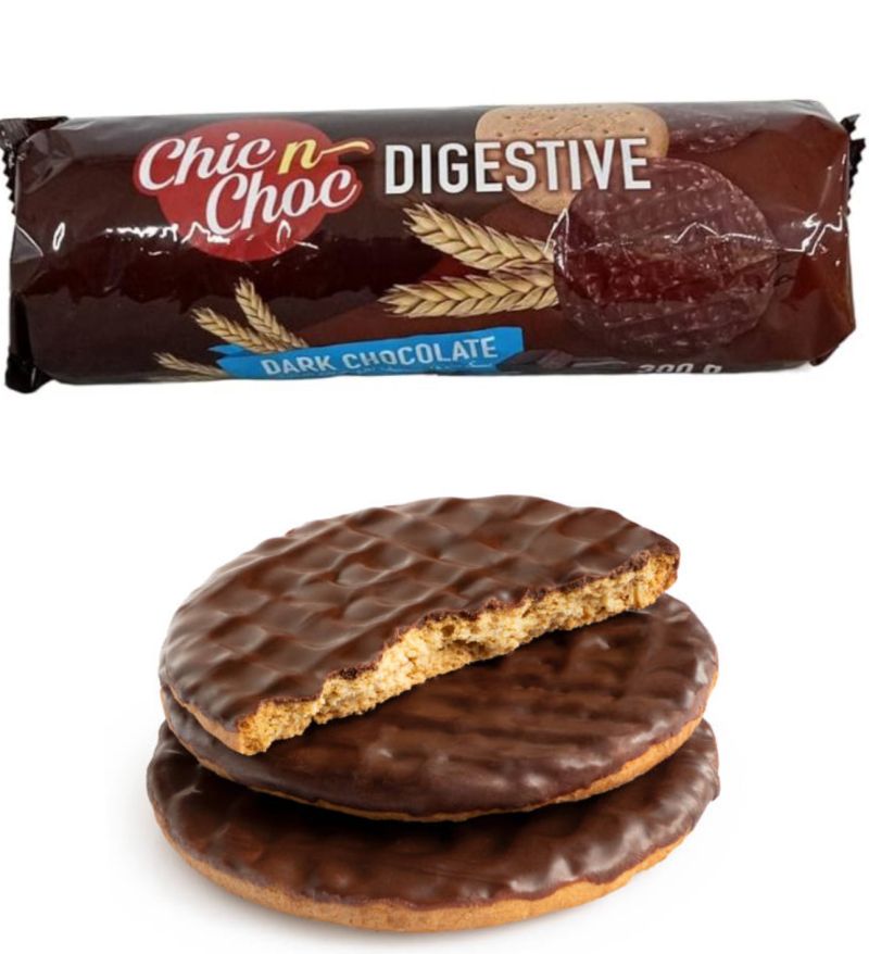 ХРАНОСМИЛАТЕЛНИ ДИЕТИЧНИ БИСКВИТИ "CHIC CHOC" ТОЗИ ВИД Е ЛИМИТИРАН И МНОГО РЯДКО СРЕЩАН, ЕДНАТА СТРАНА ПОТОПЕНИ В ЧЕРЕН ТЕЧЕН ШОКОЛАД, ДИЕТИЧЕН ВИД, ПАКЕТ ОТ 300 ГР, СТРАХОТНИ ЗА ПОХАПВАНЕ ПО ВСЯКО ВРЕМЕ В ЗАБЪРЗАНОТО ЕЖЕДНЕВИЕ