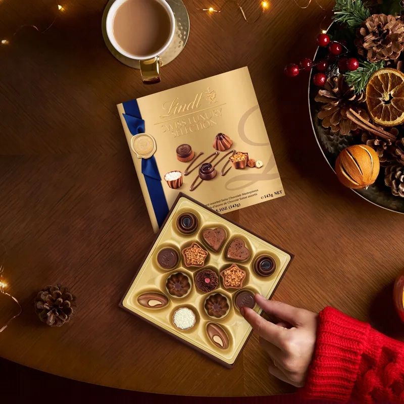 НОВО! УНИКАЛНО ВКУСНИЯ ШОКОЛАД НА ЛИНД ШВЕЙЦАРСКА СЕЛЕКЦИЯ БОНБОНИЕРА АСОРТИ ПРАЛИНИ С МЛЕЧЕН ФИН ШОКОЛАС С АЛПИЙСКО МЛЯКО И ТЪМНИ ШОКОЛАДИ 143 ГР ОКОЛО 14 БР В КУТИЯ