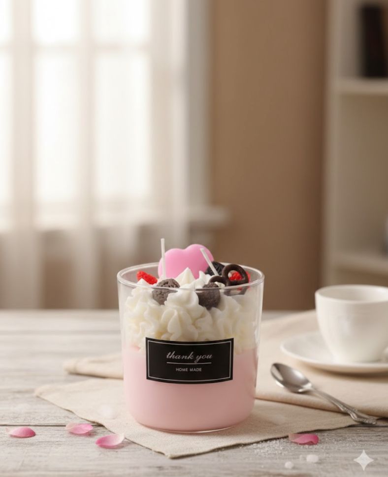 РЪЧНО ИЗРАБОТЕНА СВЕЩ КАПУЧИНО С МАКАРОН 330 МЛ