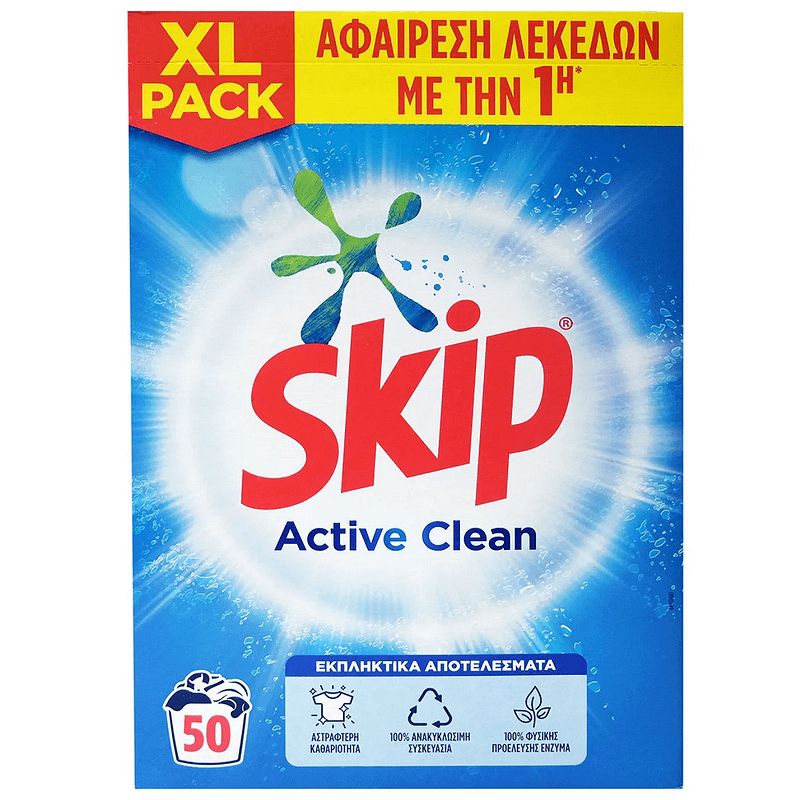 СКИП - НАЙ-АРОМАТНИЯ ГРЪЦКИ СУХ ПРАХ, ПРЕДЛАГАМЕ НАЙ-ХАРЕСВАНИЯТ ВИД - СИНИЯТ - ЗА УНИВЕРСАЛНО ПРАНЕ 50 ПЕРАЛНИ, 3,250 КГ
