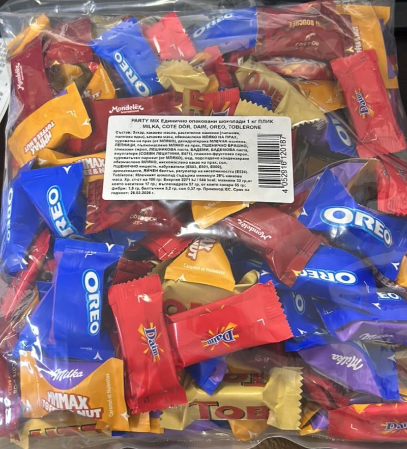 УНИКАЛЕН ПЛИК МИКС С НАЙ-ХАРЕСВАНИТЕ ШОКОЛАДОВИ ДЕСЕРТИ'' - САМО СЕГА 5 ВИДА В КУТИЯ - МИЛКА ,МИЛКА ОРЕО, КОТЕ ДОР ,ТОБЛЕРОН,ДАИМ - ЕДИНИЧНО ОПАКОВАНИ -1000 ГР