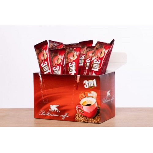 ОБОДРИТЕЛНО СЪЧЕТАНИЕ ОТ ИНСТАНТНО КАФЕ НЕСКАФЕ, МЛЯКО И ЗАХАР. BELLISSIMO Е МАРКА, КОЯТО ГОРДО СТОИ ЗАД ИМЕТО СИ, НОСЕЙКИ СЪС СЕБЕ СИ ИТАЛИАНСКИ ТРАДИЦИИ ПО СЕЛЕКТИРАНЕ И СЪЗДАВАНЕ НА ПЕРФЕКТНОТО КАФЕ. ЧРЕЗ ШИРОКАТА СИ ГАМА ПРОДУКТИ, ЗАДОВОЛЯВА И НАЙ-ИЗТЪНЧЕНИТЕ ВКУСОВЕ. 1 КУТИЯ СЪДЪРЖА 20 БР