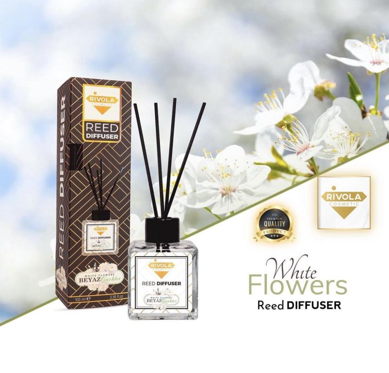 ЛУКСОЗНА СЕРИЯ АРОМАТНИ ПРЪЧИЦИ ЗА ГОЛЕМИ И МАЛКИ ПОМЕЩЕНИЯ - БЕЛИ ЦВЕТЯ, 100 МЛ, МНОГО СИЛЕН ПАРФЮМЕН АРОМАТ