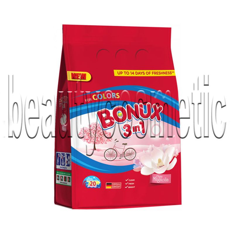 МНОГО АРОМАТЕН СУХ ПРАХ ЗА ПРАНЕ "BONUX" ЗА ЦВЕТНИ ДРЕХИ - С УНИКАЛЕН АРОМАТ НА МАГНОЛИЯ - 3 В 1 С ОМЕКОТИТЕЛ -