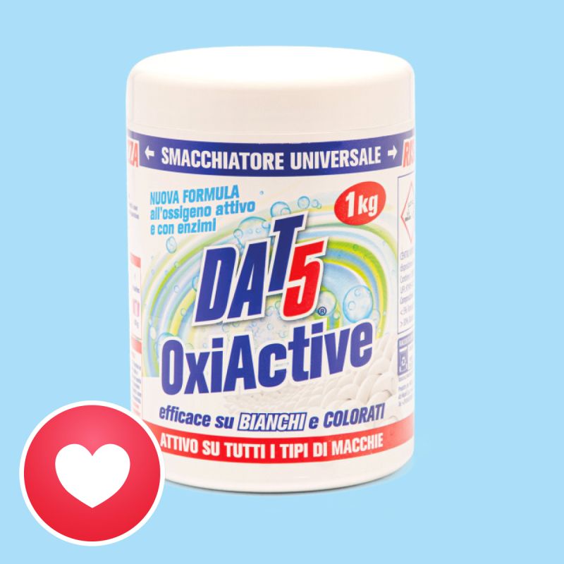 1000 ГР. "ДАТ 5" ОКСИ ИТАЛИАНСКА ДОБАВКА ЗА ИЗКРЯЩО БЯЛО ПРАНЕ - МНОГОФУНКЦИОНАЛЕН ПРЕПАРАТ ЗА ПОЧИСТВАНЕ,МОЖЕ ДА СЕ ИЗПОЛЗВА КАТО ПОЧИСТВАЩ ПРЕПАРАТ ИЛИ КАТО ПРЕПАРАТ ЗА ПРЕМАХВАНЕ НА ПЕТНА,С АКТИВЕН КИСЛОРОД И ОБЕЗМАСЛИТЕЛ СРЕЩУ УПОРИТИ ПЕТНА ОТ ПЛОДОВЕ, СОК, КАФЕ, МАЗНИНИ И МРЪСОТИЯ РАЗТВАРЯ ДОРИ И СУХИ ПЕТНА И ДЕЗОДОРИРА.