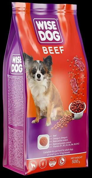 ВИСОК КЛАС ХРАНА ЗА НАШИТЕ ДОМАШНИ ЛЮБИМЦИ "WISE DOG" - ХРАНА ЗА МАЛКИ ПОРОДИ КУЧЕТА С ТЕЛЕШКО , СЪДЪРЖА И ВИТАМИНИ КАТО ОМЕГА 3 И ОМЕГА 6 И КОМПЛЕКС ОТ МИНЕРАЛИ, ВИДАМИНИ B1, B2, B3, B5, B6, B9, B12 - ПАКЕТ ОТ 400 ГР