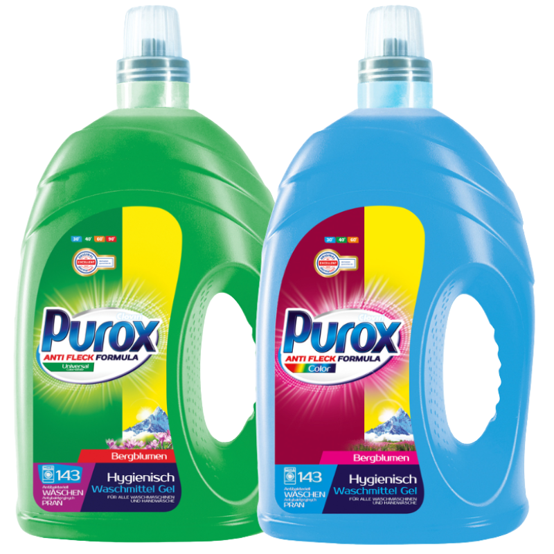 САМО СЕГА МОЖЕ ДА СЕ ВЪЗПОЛЗВАТЕ И ДА ВЗЕМЕТЕ НАЙ-ГОЛЯМАТА И ИКОНОМИЧНА ОПАКОВКА ОТ ТЕЧЕН ГЕЛ ЗА ПРАНЕ “ПУРОКС”, 4.300 Л, ЗА 143 ПЕРАЛНИ, СЪС СТРАХОТНИ АРОМАТИ, НАЛИЧЕН ВИД: СИН - ЗА ЦВЕТНО ПРАНЕ