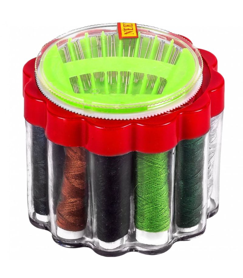 Комплект за шиене включващ 12 различни цвята конци за ръчен шев и игли с различни размери в удобна пластмасова кутия с капак‼️