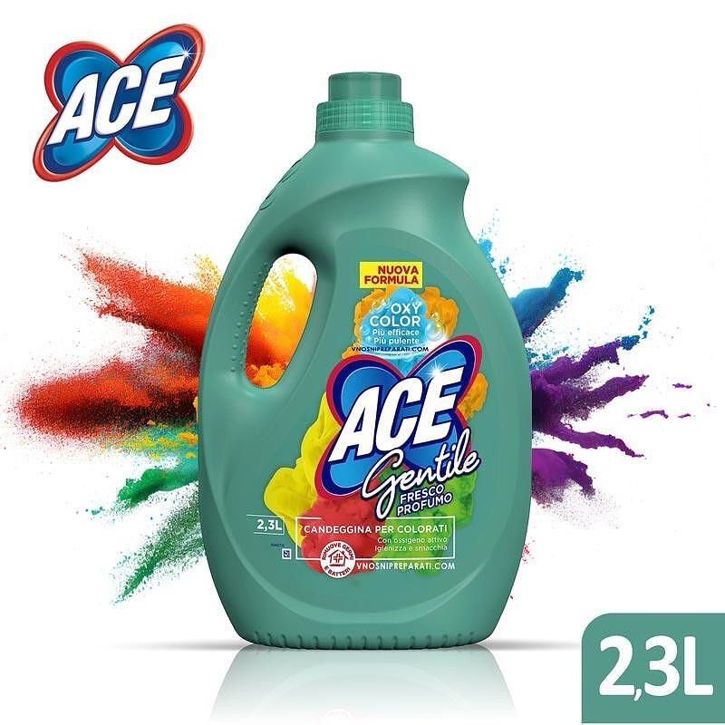 Деликатна белина за бели и цветни дрехи “АЧЕ” - свеж парфюм, не оврежда нито материата на дрехите, нито променя цветовете, напротив ОСВЕЖАВА ГИ. Слага се 1 капачка в пералнята на всяко пране. ПРЕМАХВА ПЕТНА - ако петното е упорито се търка преди да се сложи в пералнята. Много подходяща и за килими и стелки. 2300МЛ.
